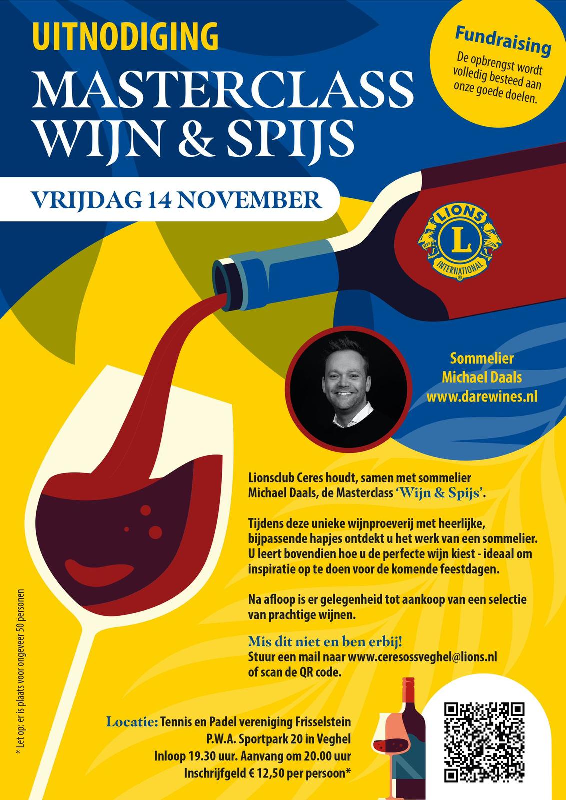 Lionsclub Ceres houdt, samen met sommelier Michael Daals, de Masterclass 'Wijn & Spijs'.