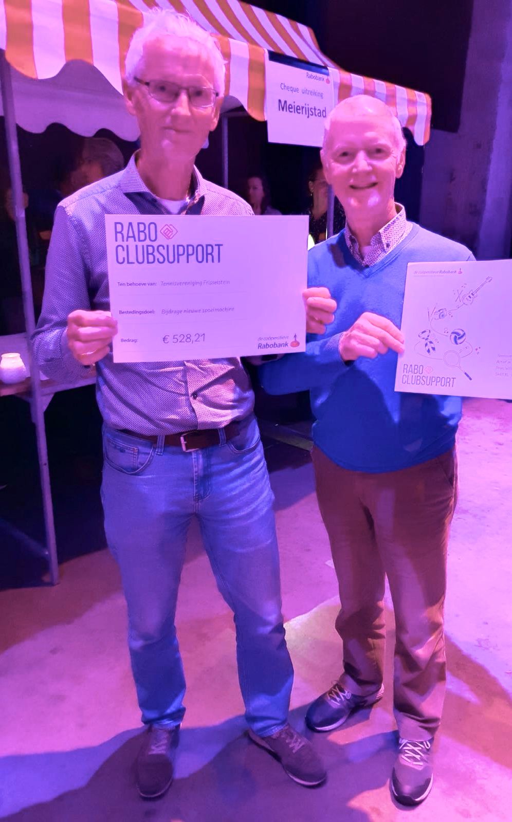 Afgelopen week is een cheque van € 528,21 uitgereikt aan TV Frisselstein vanuit Rabo Clubsupport. We danken de leden voor hun steun en natuurlijk Thea Gerritse en Wim Tiboch voor het organiseren. (en Bert van der Steen en Theo Sanders voor het poseren met de cheque ;-) )
